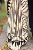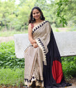 Saree work : Digital Print Border with Ajrakh Rich Pallu With Contrast Blouse