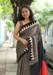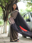 Saree work : Digital Print Border with Ajrakh Rich Pallu With Contrast Blouse