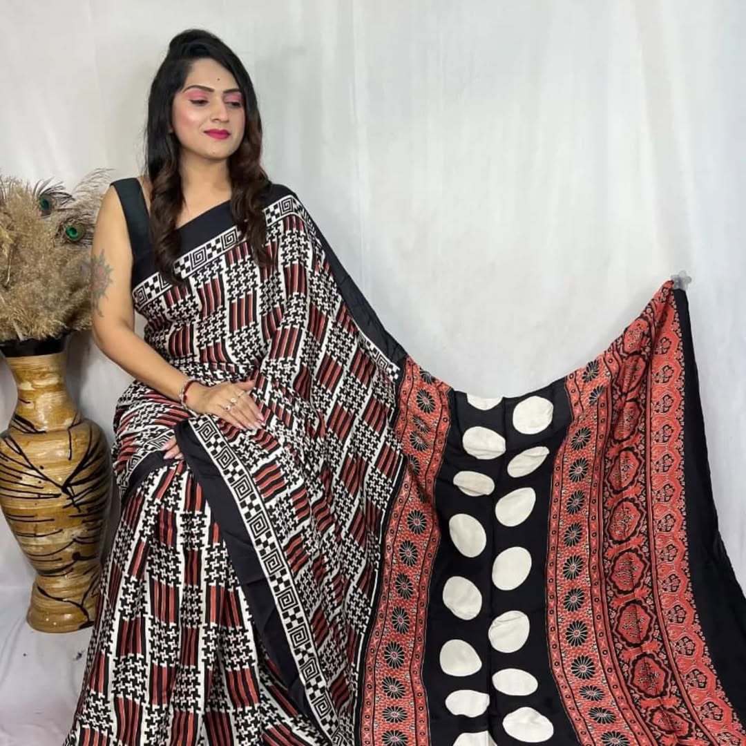 Ajrakh Primum Modal Silk Saree With Blouse