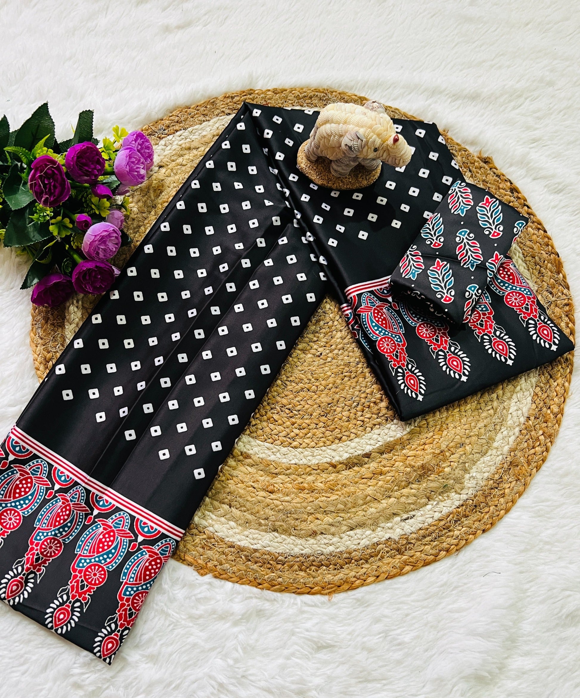 1.This product is crafted in India using only natural materials and eco-friendly dyes. As a result, there may be slight variations and imperfections in the colors and prints, which add to its unique beauty and distinguish it as a truly piece.