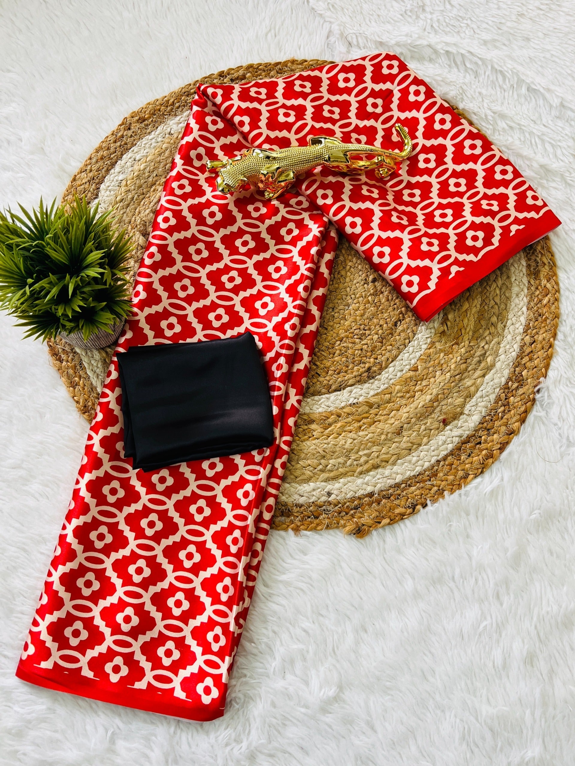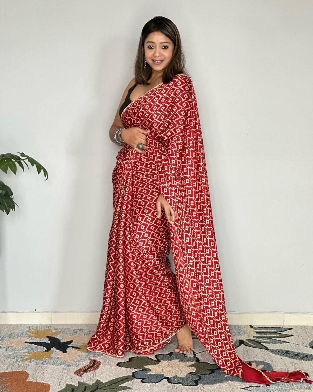 Red Ajrakh Primum Modal Silk Saree With Blouse