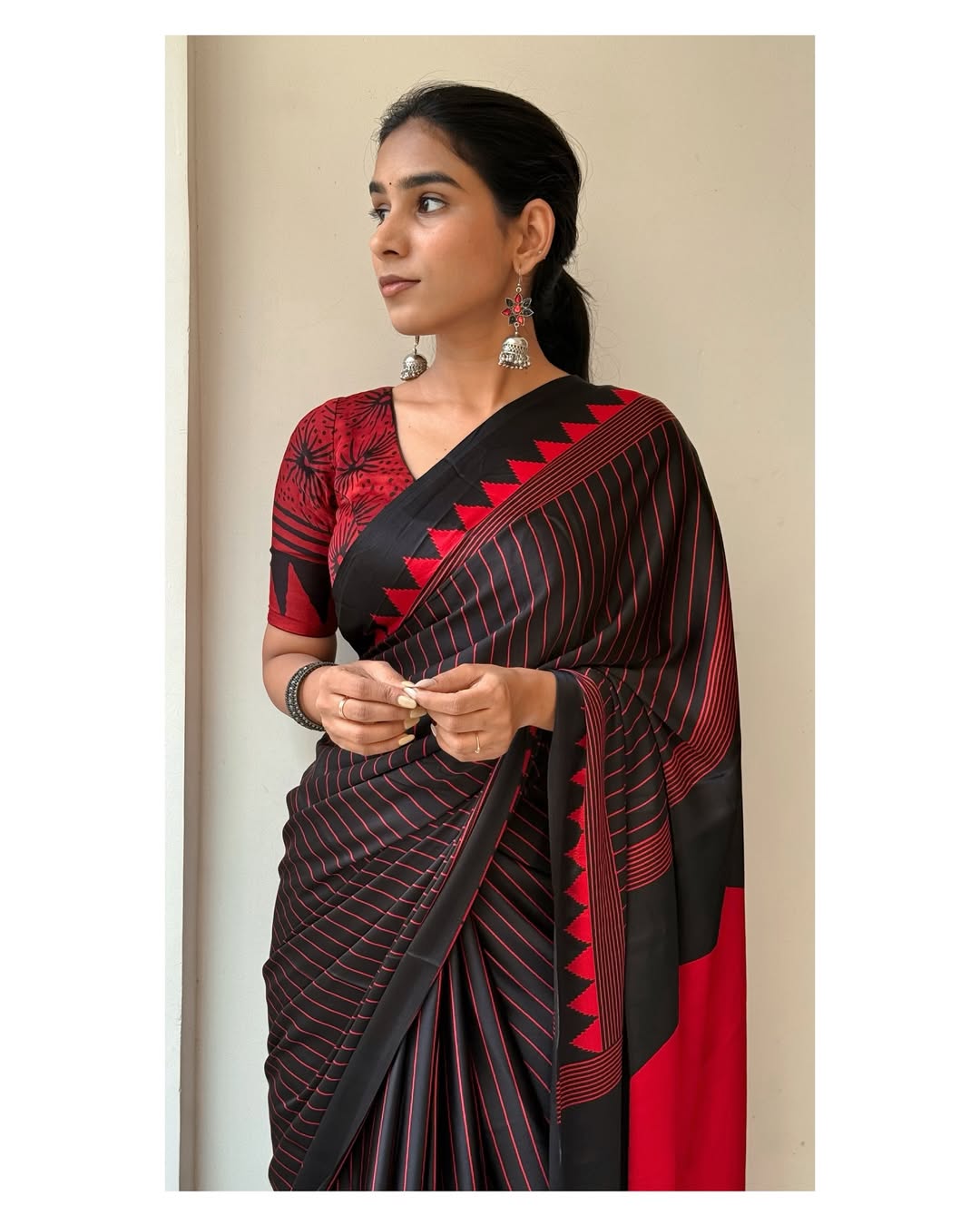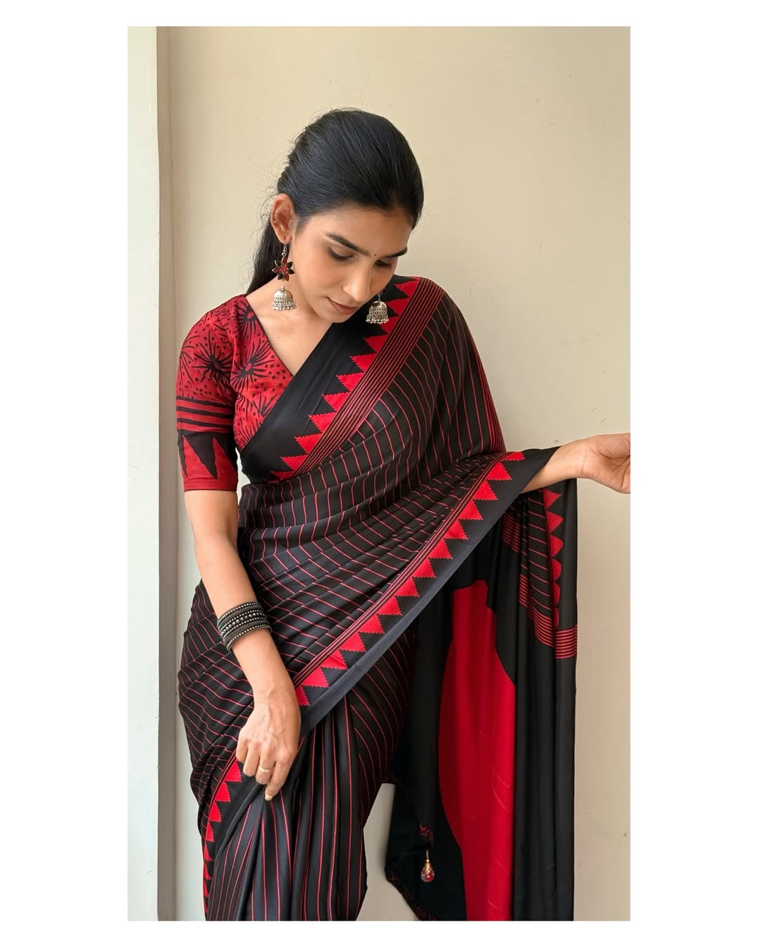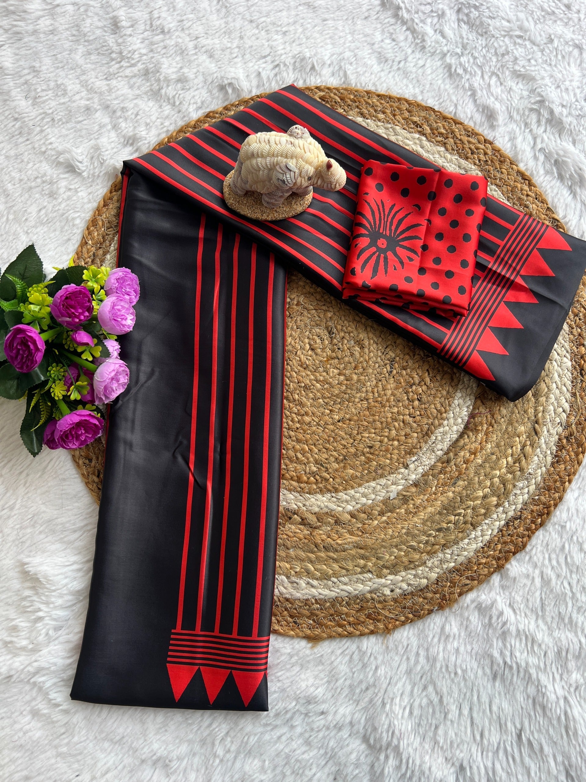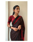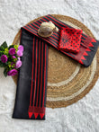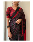Black Red Line Ajrakh Primum Modal Silk Saree With Blouse