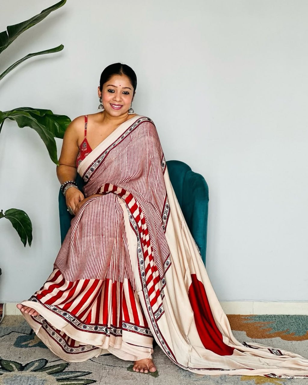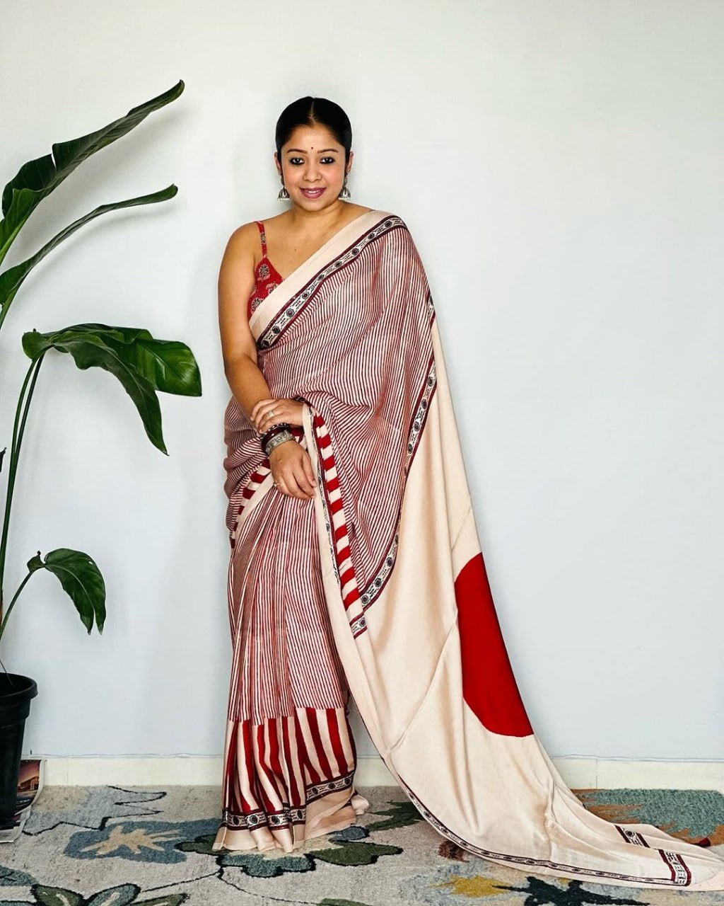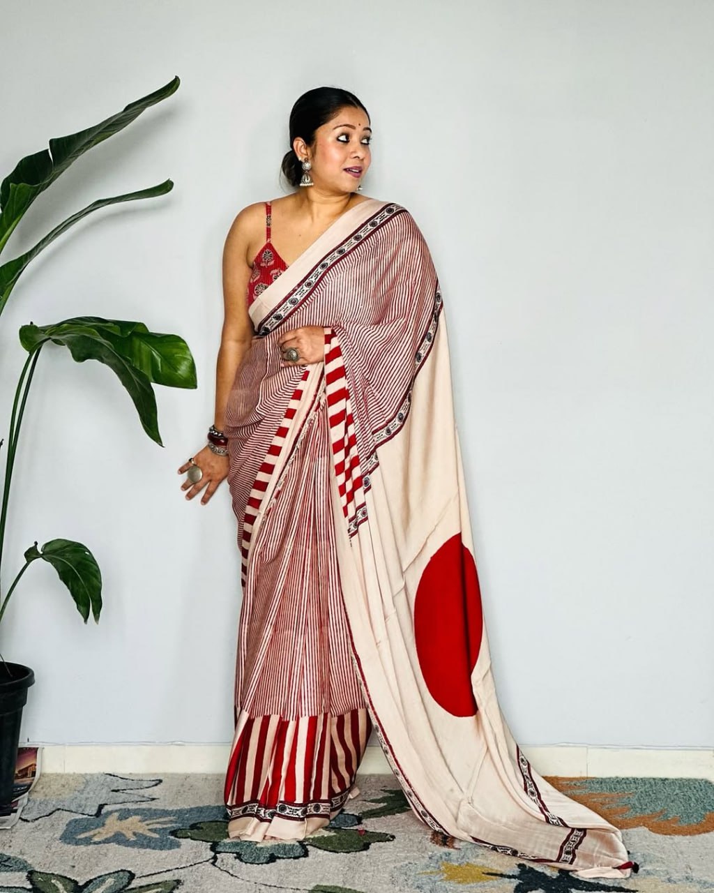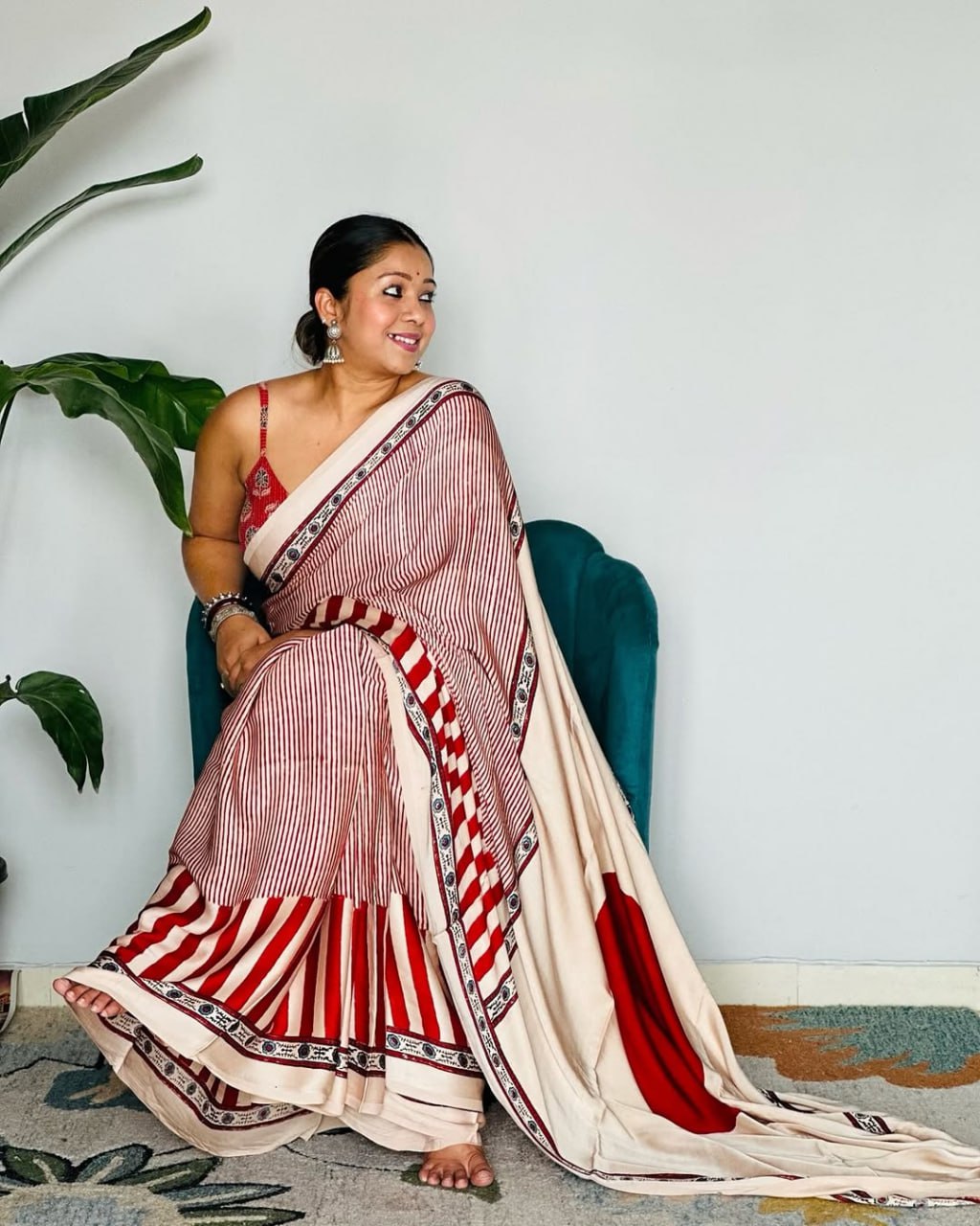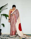 Red Cream Ajrakh Primum Modal Silk Saree With Blouse