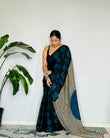 Blue Black Line Ajrakh Primum Modal Silk Saree With Blouse