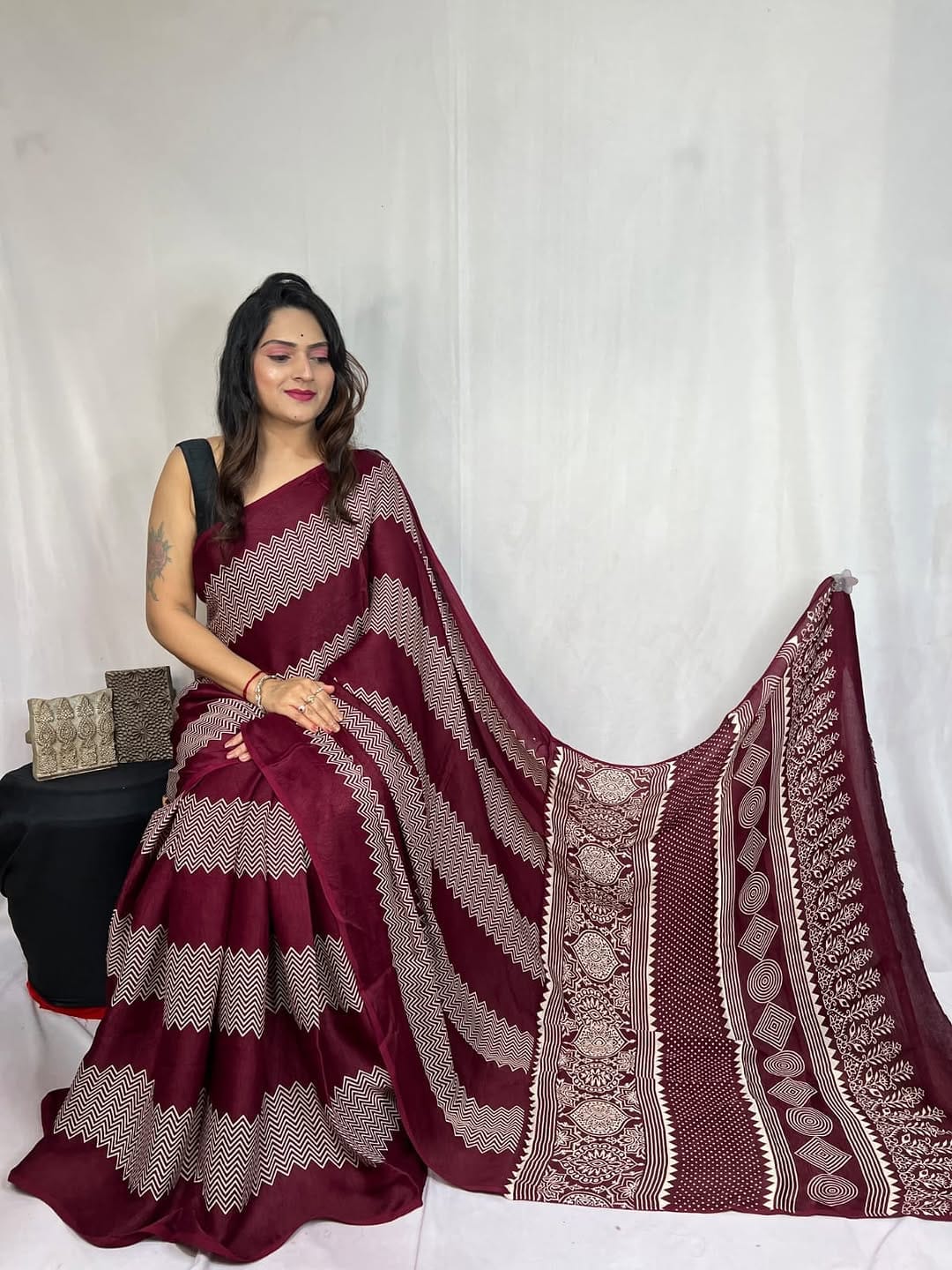Maroon Ajrakh Primum Modal Silk Saree With Blouse